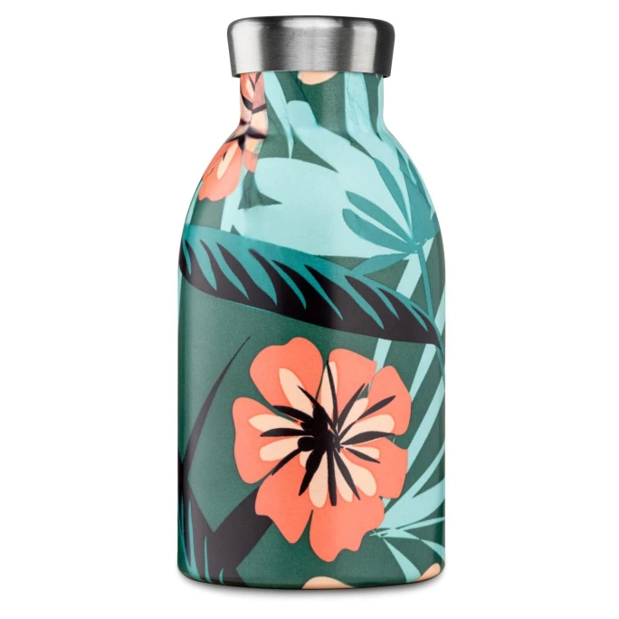 Diese Isolierflasche trägt ihr Versprechen im Namen: Die Clima Bottle der italienischen Marke 24 Bottles beeindruckt durch ihr effizientes Isoliersystem. Die Clima Bottle hält im Sommer Ihre Getränke 24 Stunden lang kalt und im Winter ihre Heißgetränke wie Tee, Kaffee oder Glühwein bis zu 12 Stunden warm. Neben den Isolierfähigkeiten der 24 Bottles Clima Flasche ist die aus rostfreiem 18/8 Edelstahl konzipierte Flasche auch so hergestellt, dass sie frei von BPA und Phtalathen ist. Die Isolierflasche Clima Bottle ist mit einem silikonisoliertem Schraubverschluss ausgestattet, so dass der Deckel wirklich komplett verschließt. Dadurch können Sie die Clima Bottle von 24 Bottles in ihrem Rucksack bei Wanderungen verstauen oder in ihrer Arbeitstasche auf dem Weg zur Arbeit. Die Clima Bottle eignet sich auch für kohlensäurehaltige Getränke. Die Flasche sollte nach dem Gebrauch per Hand gewaschen werden.