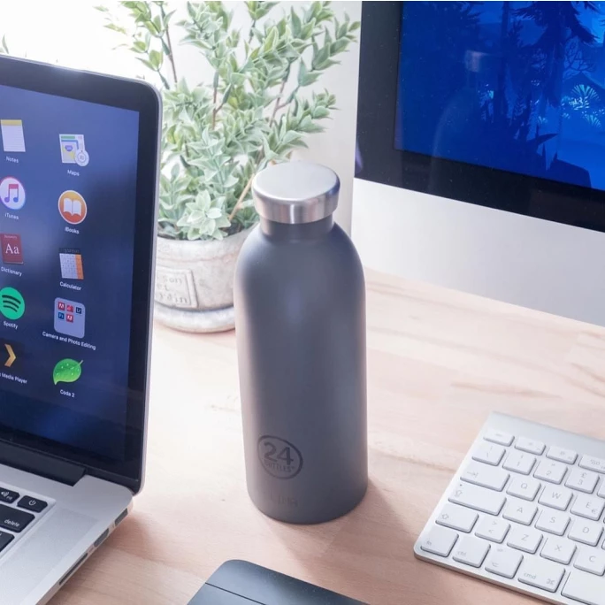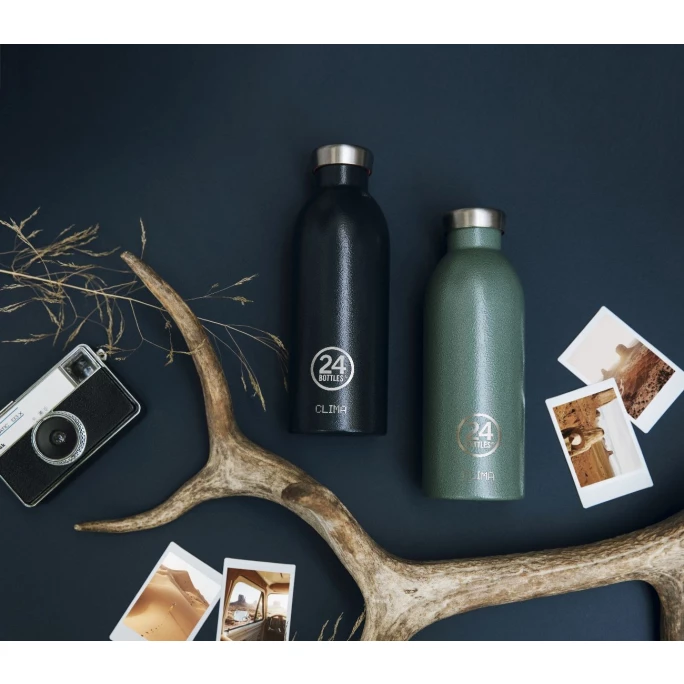 Diese Isolierflasche trägt ihr Versprechen im Namen: Die Clima Bottle der italienischen Marke 24 Bottles beeindruckt durch ihr effizientes Isoliersystem. Die Clima Bottle der Rover Collection hält im Sommer Ihre Getränke 24 Stunden lang kalt und im Winter ihre Heißgetränke wie Tee, Kaffee oder Glühwein bis zu 12 Stunden warm. Neben den Isolierfähigkeiten der 24 Bottles Clima Bottle Rover Collection ist die aus rostfreiem 18/8 Edelstahl konzipierte auch so hergestellt, dass sie frei von BPA und Phtalathen ist. Die Isolierflasche Clima Bottle der Rover Collection ist mit einem silikonisoliertem Schraubverschluss ausgestattet, so dass der Deckel wirklich komplett verschließt. Dadurch können Sie die Clima Bottle von 24 Bottles in ihrem Rucksack bei Wanderungen verstauen oder in ihrer Arbeitstasche auf dem Weg zur Arbeit. Die Clima Bottle der Rover Collection eignet sich auch für kohlensäurehaltige Getränke. Die Flasche sollte nach dem Gebrauch per Hand gewaschen werden. Das zentrale Merkmal und die Intention von 24 Bottles hinter der Rover Collection: Tauchen Sie ein in die Schönheit der Natur. Inspiriert von den unebenen Wegen, die zu unerwarteten Abenteuern führen, wird die robuste, strapazierfähige Verarbeitung der Rover-Collection jede Reisen überstehen, um jedes Abenteuer zu einem unvergesslichen Erlebnis zu machen.
